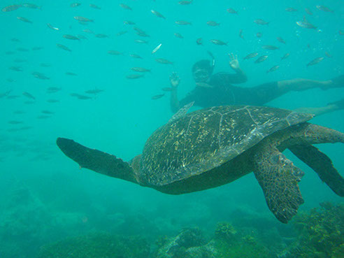 Considerado como un tour de bahía. La salida es desde el muelle eco turístico de pasajeros, se realizara un panga ride por toda la bahía de Puerto Baquerizo Moreno hasta llegar al islote; allí se realizara un desembarque seco y se realizara una caminata por el interior del islote donde se podrá observar fragatas común, piqueros patas azules anidando, pinzones de Darwin; como también no podrá faltar las colonias de iguanas marinas y lobos marinos. Finalizada la caminata retornaremos a la embarcación para que tomen sus equipos de snorkell y realizar el buceo superficial por el borde del Islote, en esta actividad observara iguanas marinas alimentándose, rayas transeúntes, tortugas marinas apareándose, y los lobos marinos juguetones que le invitan a disfrutar del mar. Finalizado el snorkell se trasladan a Playa Ochoa para descansar bajo la sombra de los arbustos de mangle o podrá tomar el sol y si prefiere realizar actividades de caminata, natación, snorkell.