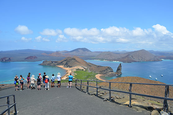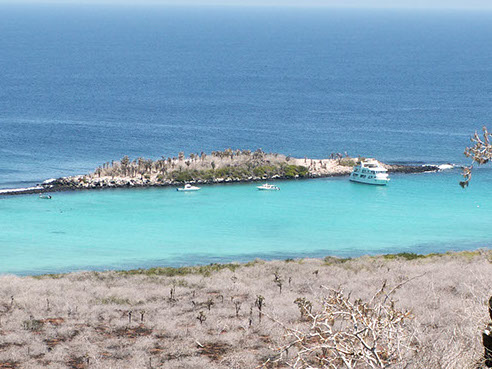 Considerado como tour diario más atractivo, Iniciamos tomando un bus desde Puerto Ayora hacia el canal de Itabaca; para tomar el yate que nos trasladara a la Isla Bartolomé en una navegación aproximada de dos horas. Debe caminar cerca de 600 mts. en aproximadamente 30 a 40 minutos hasta llegar a la cima, los cráteres y los tubos de lava que se puede observar el recorrido dará la impresión de que está caminando en la Luna; además desde allí tendrá una de las mejores vistas panorámicas de la Isla Santiago, Seymour Norte, Isla Baltra, Isla Santa Cruz y la Isla Rábida. Las actividades de natación u snorkelling lo realizaran en Bahía Sullivan rodeada de aguas de color turquesa y bellas playas de arena producto de la erosionada de la lava donde encontraran a los pingüinos de Galapagos, tiburones de arrecife, rayas, tortugas marinas, y variedad de especies marinas tropicales. Finalizando las actividades con el retorno al hotel.