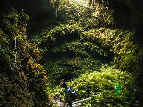 Estos dos sitios nos na la oportunidad de vivir nuevas experiencias por el interior de la tierra, en 30 min en carro y 15 minutos en caminata llegamos a una propiedad privada donde encontramos orificios que nos permite descender con líneas de seguridad a una profundizada de 150 mts, con arnés y por escaleras y en los sitios de descanso se podrá observar ductos de túneles que posiblemente se conectan con el mar y otros con las calderas de volcanes sierra negra y otros sitios aun no descritos.
