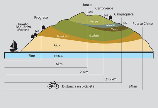 Actividades que combinan los cambios de climas “Calor- Frio”, en un recorrido paisajístico con vista de 360 pudiendo observar las islas que le rodean; Sitios turísticos de San Cristóbal, experimenta la variación de los climas; iniciando desde el LITORAL o Costa donde usted está, ÁRIDA (zona agrícola), HÚMEDA, MICONIA, y HELECHOS lugar ubicado la Laguna el Junco volcán apagado única en Galápagos con acumulación de agua dulce en su cráter.