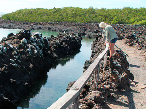 Con una caminata corta sobre los fragmentos de lava para poder observar las vegetación existente y el majestuoso paisaje de puentes, cuevas y túneles. Visitando también FINADOS que es un laberinto de mangle.